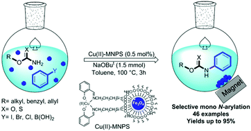 An Fe3o4 Sio2 Schiff Base Cu Ii Complex As An Efficient Recyclable Magnetic Nanocatalyst For Selective Mono N Arylation Of Primary O Alkyl Thiocarbamates And Primary O Alkyl Carbamates With Aryl Halides And Arylboronic Acids New Journal Of
